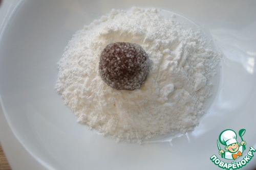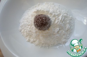 • Из остывшей шоколадной массы скатать шарики, размером с грецкий орех.