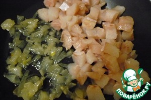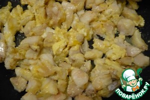 Лук мелко порезать, обжарить на масле. Добавить рыбу и обжарить до готовности.