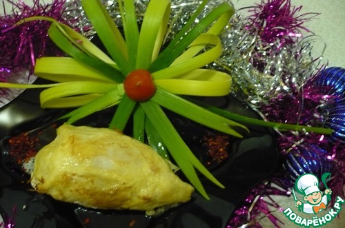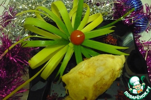 Готовый. Я делала кальмары на 6 порций, поэтому и бантик сделала большенький. Но пока ходила в магазин, мои оставили только 2.