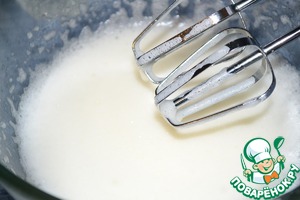 Два белка взбить с солью на высокой скорости миксера до устойчивых пиков