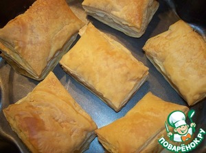 Тесто нарезаем на прямоугольники. Тесто должно начать чуть-чуть подтаивать, резать в таком состоянии. Ставим в духовку и только потом ее включаем на 180 градусов. Печем 25 минут.