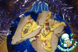 Накроем рулет. Смажем взбитым яйцом и поставим в разогретую духовку на 45минут при 190град. После накроем фольгой и еще запекаем 30 минут.