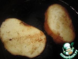 Хлеб обжарить до золотистой корочки на подсолнечном масле