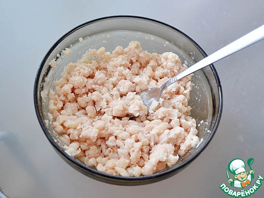 Когда фасоль будет готова, слейте воду, разомните бобы вилкой.