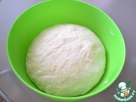 Смажьте тесто маслом, поместите в миску и накройте полиэтиленом. Дайте подойти тесту, пока оно не увеличится вдвое.