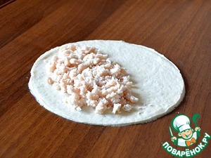 Каждый кусочек теста раскатайте в круг скалкой на поверхности, слегка посыпанной мукой или смазанной маслом. Толщина теста – на ваш вкус. У меня получилось 4-5 мм.