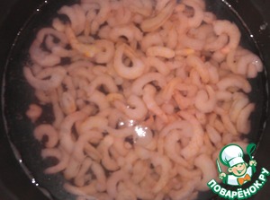 • Отвариваем креветки. Я брала замороженные очищенные коктейльные креветки - их нужно класть в кипящую подсоленную воду и варить 2-3 минуты.
