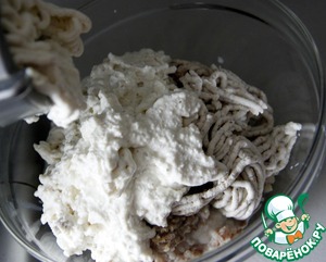 Пропустить сельдь вместе с молоком, орехами, творогом 2 раза через мясорубку.