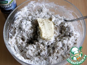 Добавить размягчённое сливочное масло и перец. Перемешать и взбить в миксере.