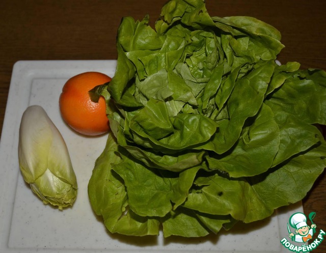 • Основные ингредиенты для салата: салат листовой (садовый), листовой цикорий, апельсин