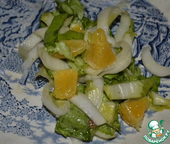 Рецепт «Салат листовой с салатным цикорием и апельсинами»: