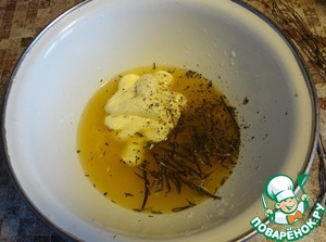 Сделаем маринад для нашего мяса. поскольку оно у нас достаточно сухое, без жира, то мы добавим для этого дела майонез, чтобы оно было посочнее.