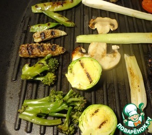 Овощи у меня были все свои с огорода, но замороженные, но я их сразу положила на разогретую сковородку-гриль.