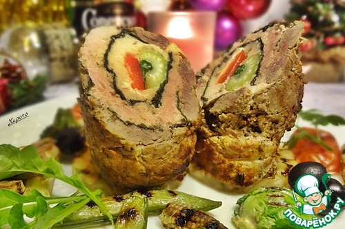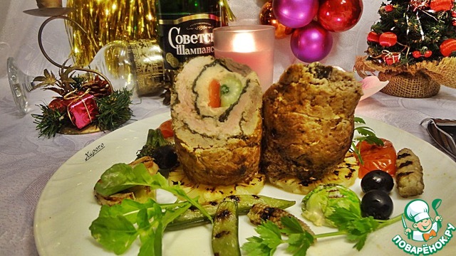 Я часто делаю этот рулет на праздники, поэтому решила показать и вам, потому что получается очень вкусно. Три вида мяса в одном блюде смогут удовлетворить вкус любого гурмана. на гарнир в новогоднюю ночь лучше подать обжаренные на гриле свежие овощи. Это и красиво, и очень полезно.