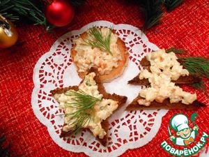 Не просто закуска, а настоящая находка для тарталеток, закусочных эклеров, канапе, бутербродов, крекера… Предлагаю вашему вниманию два варианта этой закуски в новогоднем оформлении.