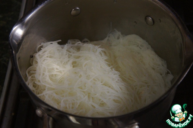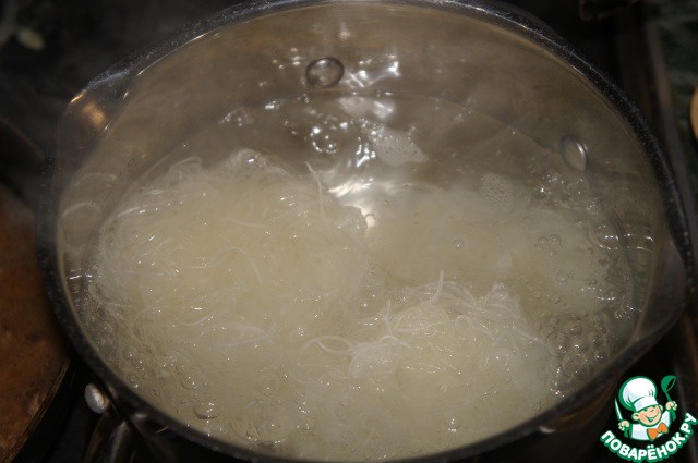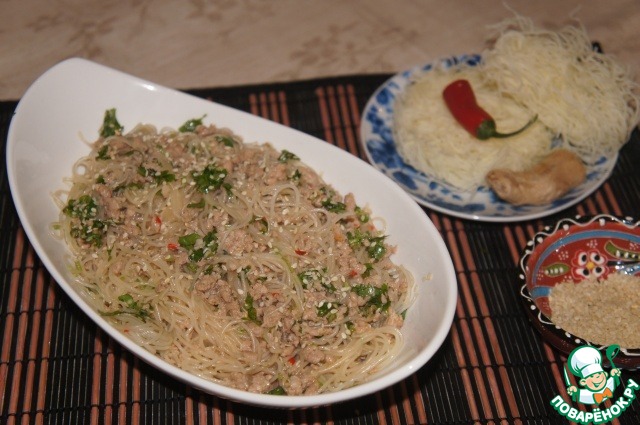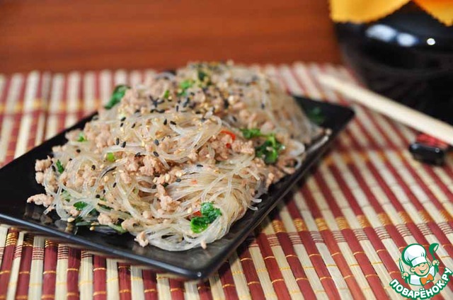 Фунчоза — блюдо китайской, корейской, японской и других азиатских кухонь, которое готовится из стеклянной лапши с приправами. Википедия.