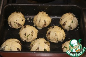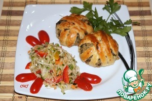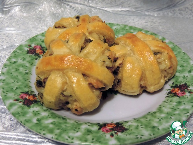 Рецепт «Слоеные клубочки с курицей и грибами»: