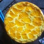 Выливаем творожную начинку и сверху выкладываем апельсинки. -