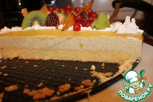 Выливаем на корж. Ставим в холод. На 2 часа минимум.