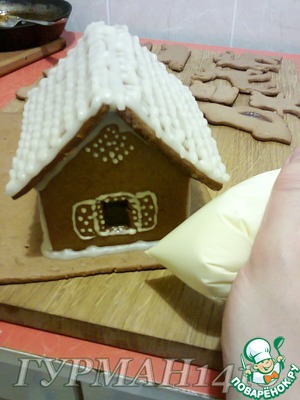 55. Глазурь выдавливаю в разные отверстия и проемы – на крышу, в боковые стены…