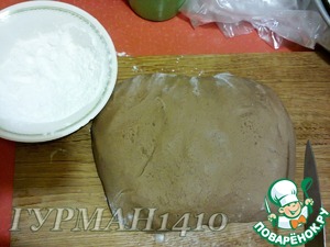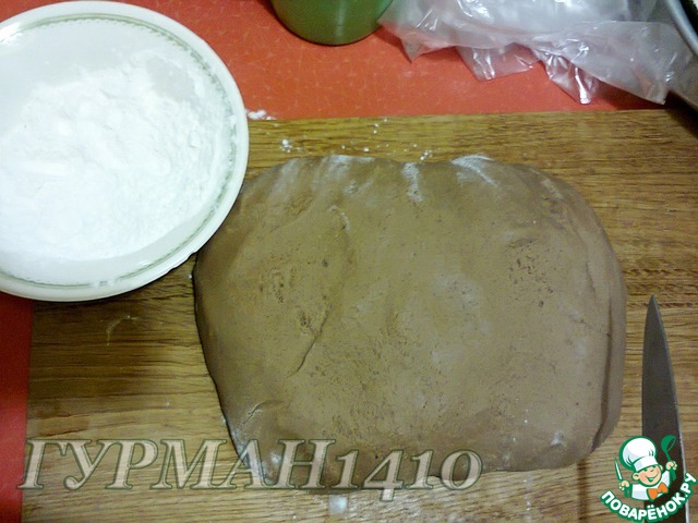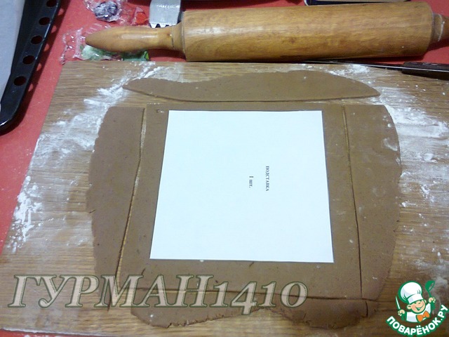 32. Достать тесто, оно слегка затвердевшее. Слегка посыпать поверхность мукой, немного муки на скалку и на бумажные шаблоны (тесто когда потеплеет, станет немного прилипать).