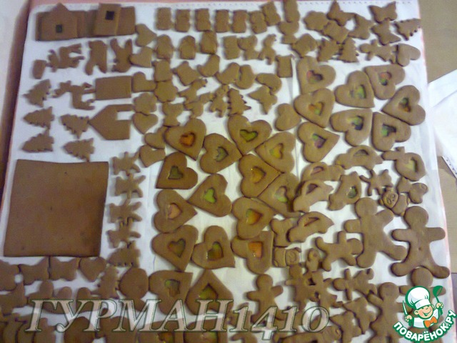 25. На следующий день можно приступить к выпечке пряничных изделий. В этом году выпекаю небольшой пряничный домик и остальное – пряничное печенье, которое вырезаю формочками или делаю по понравившемуся шаблону.