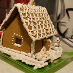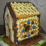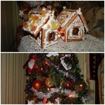 59. Домик почти готов ( в этом году у меня домик скромный - без красивых сухофруктов и конфет). Когда глазурь и шоколад застынет, посыпать домик сахарной пудрой.