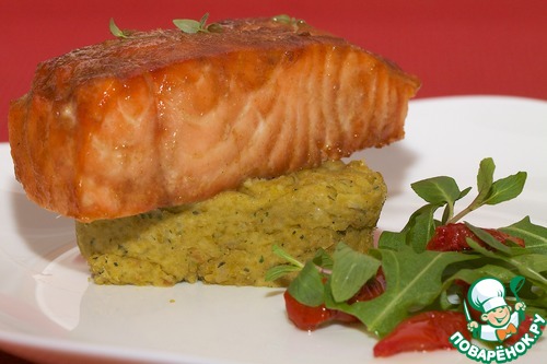 Рецепт «Глазированный лосось с мятным гороховым пюре»: