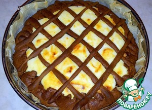 Из остатка теста раскатала полоски и разложила в виде решетки сверху. -