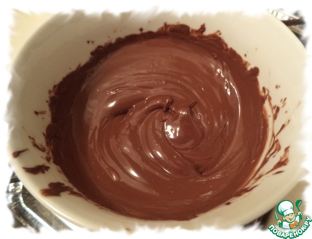 130 г. шоколада растопить на водяной бане до полного растворения кусочков.