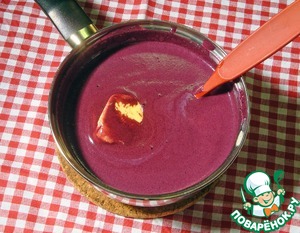 Добавить черничное пюре и нагревать пару минут при помешивании. Снять с огня и подмешать масло. Процедить и остудить.
