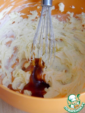 Постепенно во взбитое масло добавляем карамельный сироп и тщательно взбиваем.