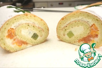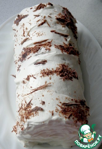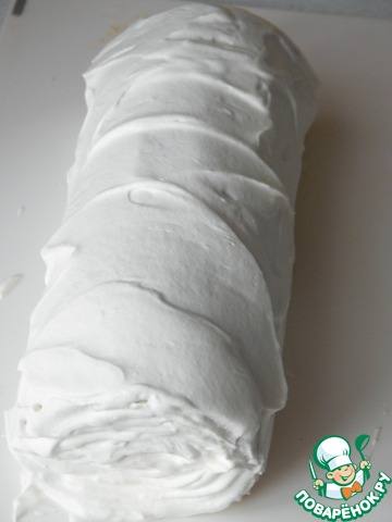 Остывший бисквит раскручиваем, промазываем кремом. Снова сворачиваем.