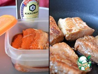 Для начинки срежьте с форели филе, положите в подходящую ёмкость, залейте соевым соусом и уберите в холодильник на сутки. Маринованное филе обжарьте в течение 1 минуты на разогретой сковороде, смазанной небольшим количеством масла. Охладите, нарежьте на кусочки.