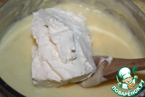 Добавляем творожный сыр, взбиваем до однородности.