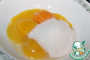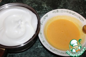 Сахар смешать с желтками, белки пока убрать (они нам понадобятся в бисквит).