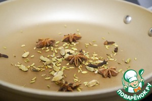 Специи подогреть на сухой сковороде чтобы усилить их аромат.