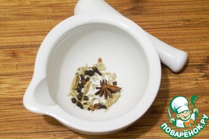 Вторую часть специй растереть в ступке или смолоть удобным вам способом.