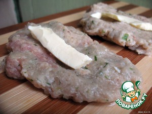 В серединке, где был кусочек масла, остается такая небольшая полость, откуда вытекает мясной сок, смешанный с маслом!