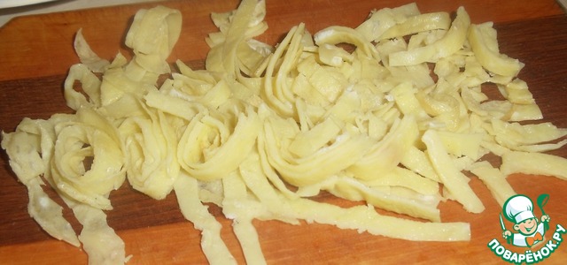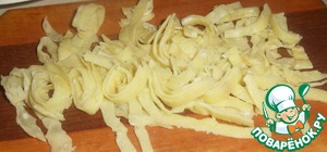 Каждый блинчик свернуть трубочкой и нарезать соломкой