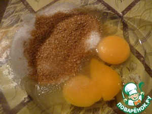 - Сахар (В оригинальном рецепте обычный сахар. Здесь же я взяла 4 ст.л. обычного сахара и 2 ст.л. коричневого сахара с корицей.) — 6 ст. л.
