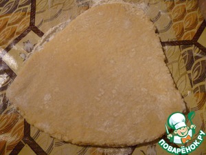 Затем на посыпанном мукой столе раскатать тесто в пласт 0.5 см.