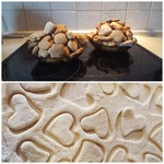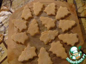 Вырезать фигурки. И печь на пергаменте в заранее разогретой духовке при температуре 180 градусов 12 минут и при 200 градусах 10 минут.