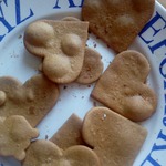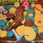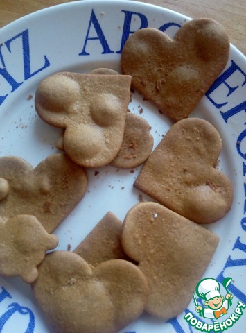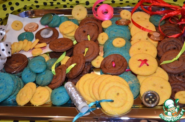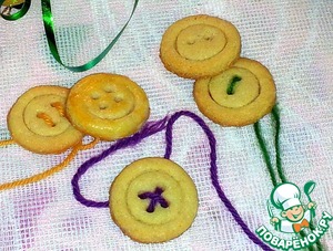 Испекла я это печенье и спрашиваю сына: "На что оно похоже?" Сын ответил, что на пятачки. Я сначала не поняла, какие пятачки. Когда дошло, долго смеялась. Пришлось нитки вдеть...