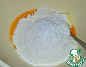 В миску насыпать сахар, ванилин, вылить желтки и растопленное масло. Добавить муку, соль и имбирь.