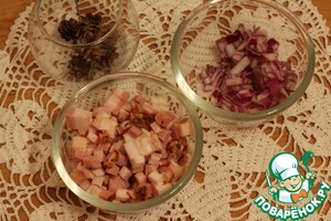 Ингредиенты для «Тушеная чечевица с беконом, луком, имбирем»: