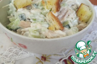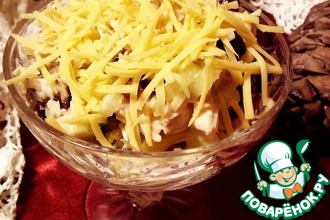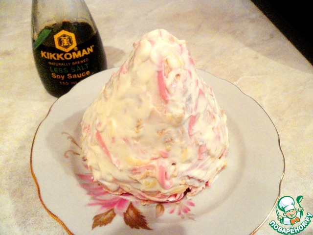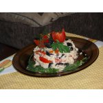 Этот салат я попробовала на юбилее моей мамочки. Салат очень понравился всем, а повар дал нам рецепт. Я его предлагаю в той же подаче, что он и был на юбилее.