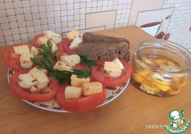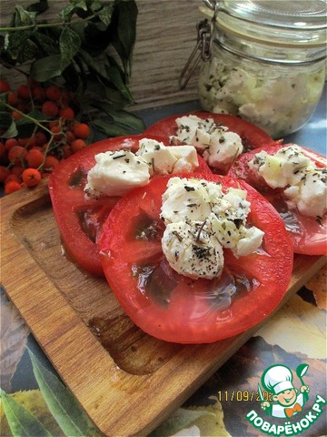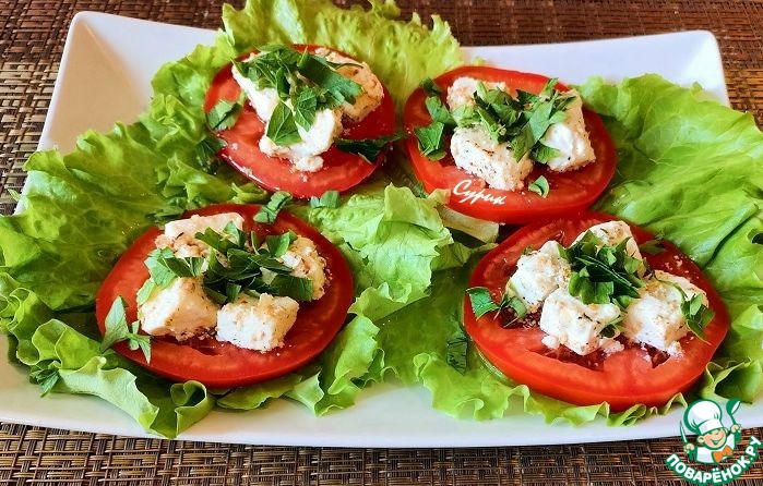 Эту закуску очень легко и быстро приготовить! Как известно, все гениальное - просто! Помидор и маринованная брынза просто рождены друг для друга!
