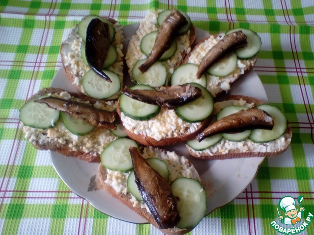 Рецепт «Бутерброды со шпротами и огурцом "Легкие"»: