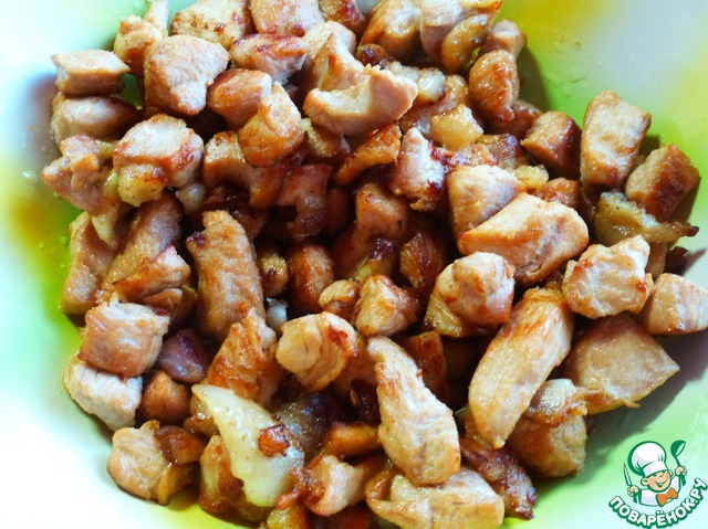 Грудку индюшки порезать на небольние кусочки